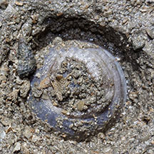 its oral disk partially into the body column. Colours seen include grey, beige, pink.