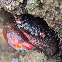 crabs with big pincers seen on the rocky shores and coral rubble.