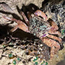 small purple crab is commonly seen on our rocky shores in the North and South. Usually only active at