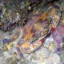 seen? This swimming crab with purple legs is commonly seen