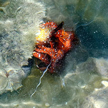 walking and pincers sparsely hairy, red or orange with scattered black-edged