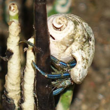 Where seen? This small hermit crab is seen near mangroves,