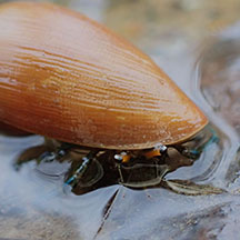 rivers and mangroves on mud or sand. Usually, only one is seen. It is not seen in such abundance as the Orange-striped hermit crab. |