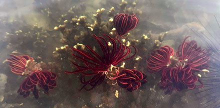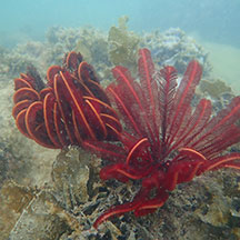 Feather friend: Sometimes, a tiny Crinoid shrimp is seen living in this feather star. It closely resembles the feather star in colour and pattern.