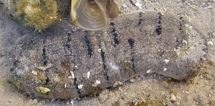 seen? This large loaf-shaped sea cucumber is commonly seen in numbers in seagrass