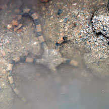 on our Southern shores, under stones and rocks near reefs. Its smooth and banded pattern on the upperside reminds us of the Twin-barred Tree snake.