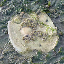 shell and sieves out the food particles with its gills. When it is exposed at low tide, it clamps up its shell tightly to prevent water