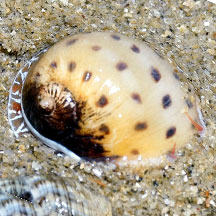 seen? This moon snail with a spotted shell and intricately patterned body is sometimes seen on clean sandy shores on some of our