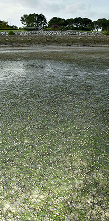 sea or slow-moving, sheltered, shallow waters. Also seen in silty lagoons. The study by Tan &