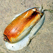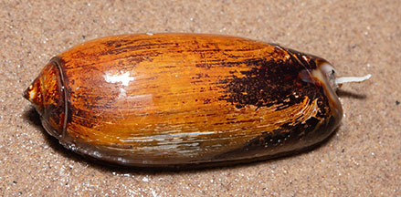seen? This large bullet-shaped snail is sometimes seen on some of our shores. A burrowing snail, it is more often seen above