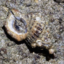 of beaded ridges. Shell opening wide with a scalloped inner edge.