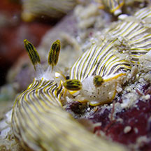 tiny nudibranch is sometimes seen on coral rubble and seaweeds near