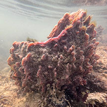 seen? This maroon barrel-shaped sponge is sometimes seen on many of our