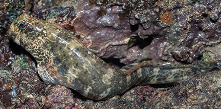 seen? This small elongated fish is sometimes seen hidden in crevices on encrusted rocks, seawalls and rubble, even out of water at low tide.