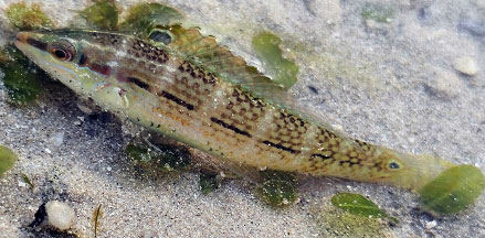 seen about 6-8cm. Snout pointed, a dark stripe along on the side,