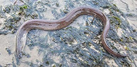 slender snake-like fish with yellow speckles is sometimes seen on our undisturbed shores