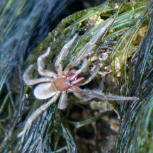 a mat of silk. It emerges at low tide to hunt. It can 'walk' on water,