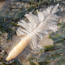 usually buried and seen only in uprooted sea pens. Short (2-3cm) leaf-like