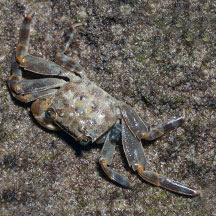 little green-eyed crab is commonly seen in our mangrove trees. Small