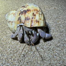 This hermit crab is seldom seen on the mainland.