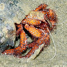 walking and pincers sparsely hairy, red or orange with scattered black-edged