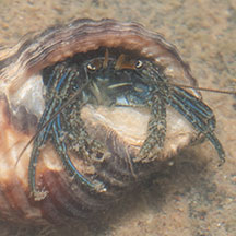 Where seen? This small hermit crab is seen near mangroves,