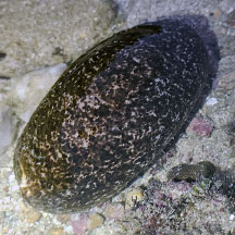 reefy areas. It is said to be predominantly nocturnal, during the day hiding under large stones or crevices in the reefs. It is sometimes called the 'stone fish sea cucumber' because it is firm and looks