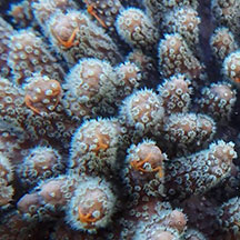 have colourful bands on their arms and central disk also with colourful markings. The two kinds of tiny brittle stars are sometimes seen together. |