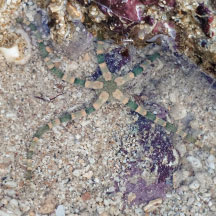 on our Southern shores, under stones and rocks near reefs. Its smooth and banded pattern on the upperside reminds us of the Twin-barred Tree snake.