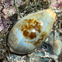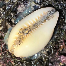 eggs after she lays them, covering the egg mass (usually yellowish) with her foot. So if you see a cowrie under a stone, please don't rip it off.