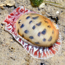 seen? This moon snail with a spotted shell and intricately patterned body is sometimes seen on clean sandy shores on some of our