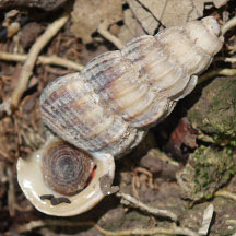 (not so elongated) with ribs of fine beads. Tip usually broken. Shell