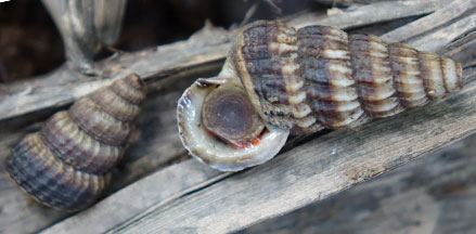 dark. In addition to a pair of eyes on tentacles, the snail has a