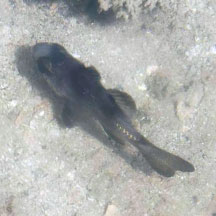 10cm, those seen usually about 2-4cm. Body rounded with fins that are all rounded, including the tail fins. Whole body dark. Distinguished by a pale-edged dark spot at