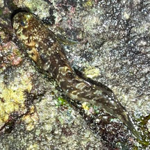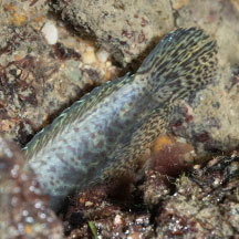 seen? This small elongated fish is sometimes seen hidden in crevices on encrusted rocks, seawalls and rubble, even out of water at low tide.