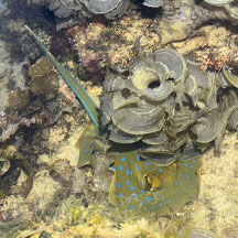 the tail, so it is sometimes called the Blue-spotted ribbontail ray.