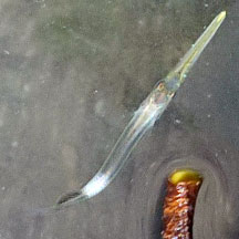 small stick-like fish with a wide flattened lower jaw is commonly seen