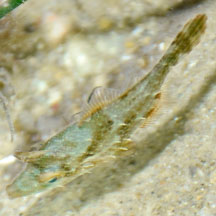 in sheltered areas with seagrasses and near reefs. It often remains motionless next to seaweeds or rocks, sometimes flattening out against or 'wrapping around'