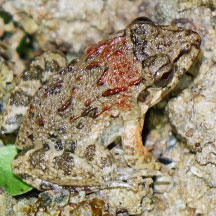 gun (here's a sound clip of the call by the Herpetological Society of Singapore). Total length to 8cm. A stout frog with long muscular back legs